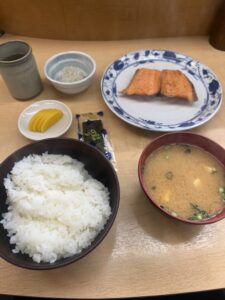 鮭自体はしょっぱい系ではなく、脂もそこまで強くない。ただ鮭らしい旨みがしっかりあって、焼き加減はばっちり。