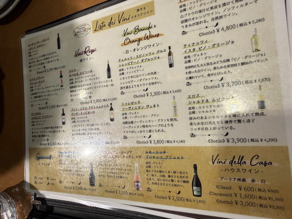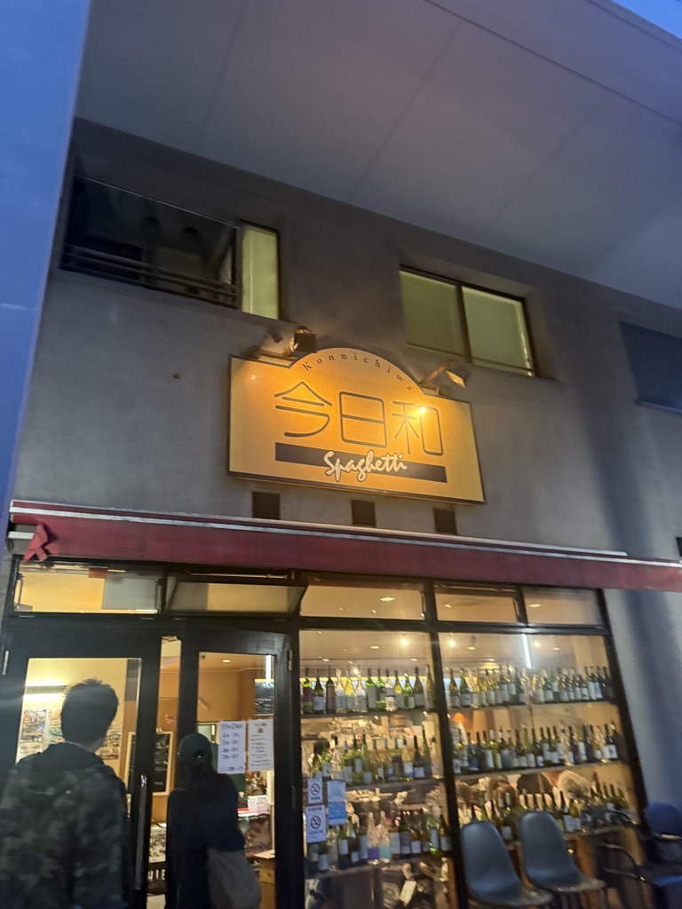 電話予約を入れておいて正解だった。着いたら店内はほぼ満席。窓一面に並んだワインボトルが迎えてくれる外観、来るたびに好き。