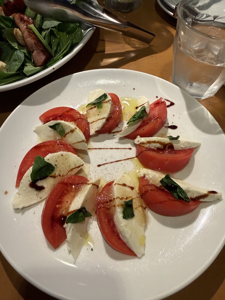 カプレーゼ。トマトとモッツァレラ、バルサミコとオリーブオイル。シンプルだけどちゃんとうまい。