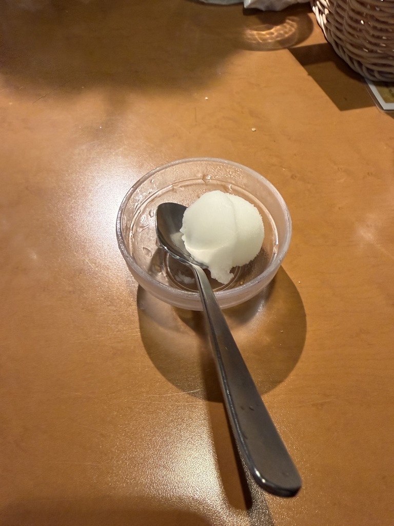 生パスタ。もっちもち。クリームソースと温泉卵が絡んで、全体がしっかりまとまってる。きのこたっぷり、牡蠣の旨みがソース全体に溶け込んでる感じ。パルメザンと刻みネギがアクセント。うまいわ。